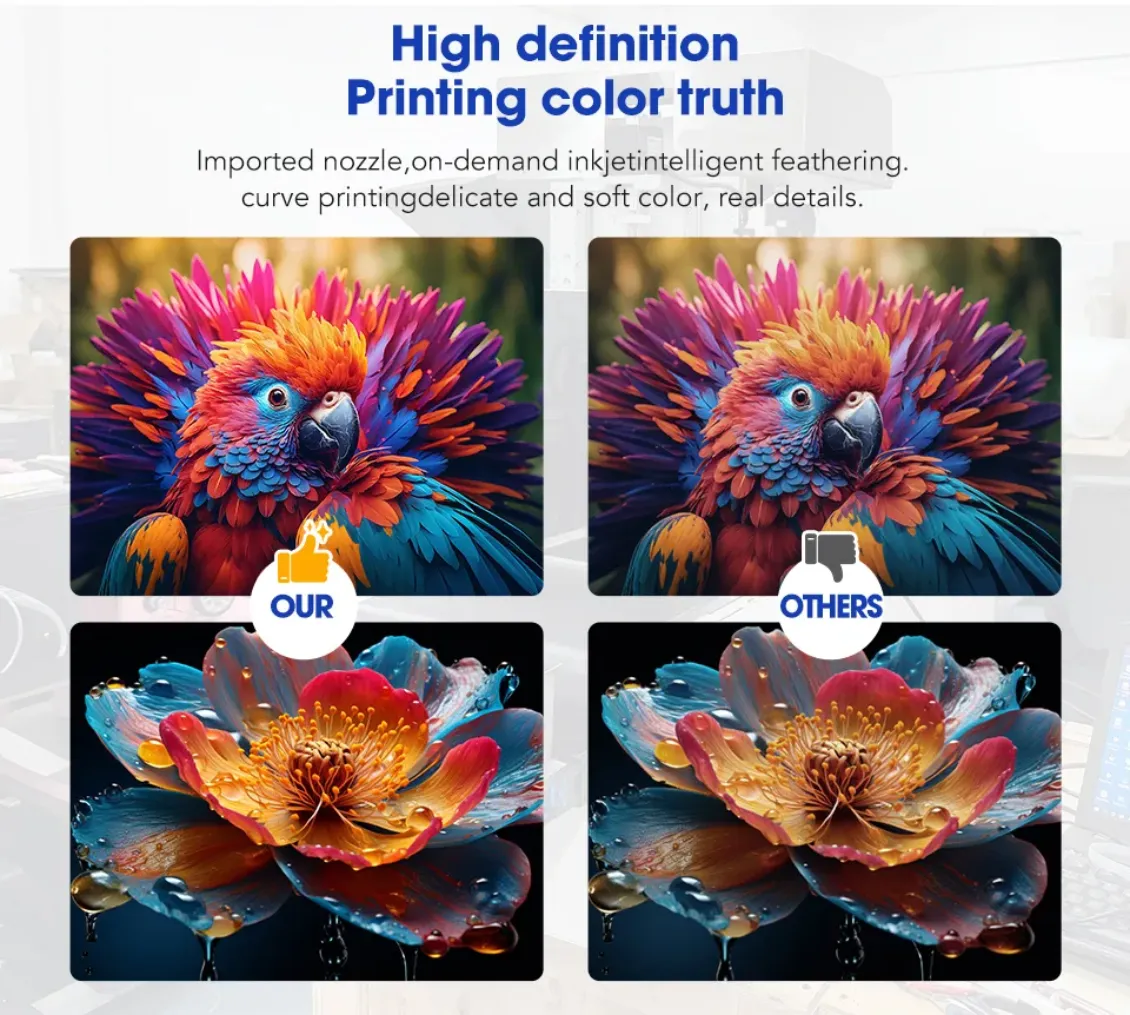 Imported nozzle, on-demand inkjet intelligent feathering. curve printing delicate and soft color, real details