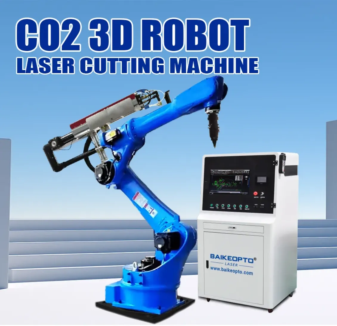 The CO2 three-dimensional robot cutting machine is an advanced cutting equipment that integrates CO2 laser technology and robot automation technology. lt uses a CO2 laser to generate an infrared laser beam with a wavelength of 10.6 μm. Through the high-energy laser beam interacting with the material, it causes the material surface to rapidly heat up to a molten or vaporized state. At the same time, gas assistance (such as compressed air, nitrogen) is used to blow away the slag, thereby achieving efficient cutting of the material.