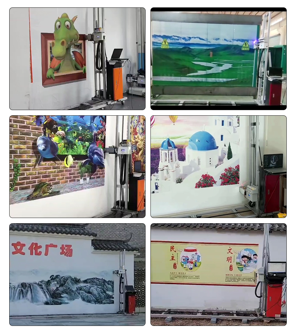 Q1: Are you a factory or a trading company? Q2: How long is the warranty period after purchasing the machine? Q3: How soon can the delivery be made after payment? Q4: How long can the printed patterns remain on the wall? Q5: How much ink is consumed for printing patterns? Q6: What should I do if I no longer want the printed pattern on the wall? Q7: What language settings are available on the machine? Q8: How do you handle uneven ground during printing? Q9. How is the quality of the machine? Are there any components that are prone to damage? Q10. Can one print head be used for printing four colors, while another print head is dedicated to printing white? |