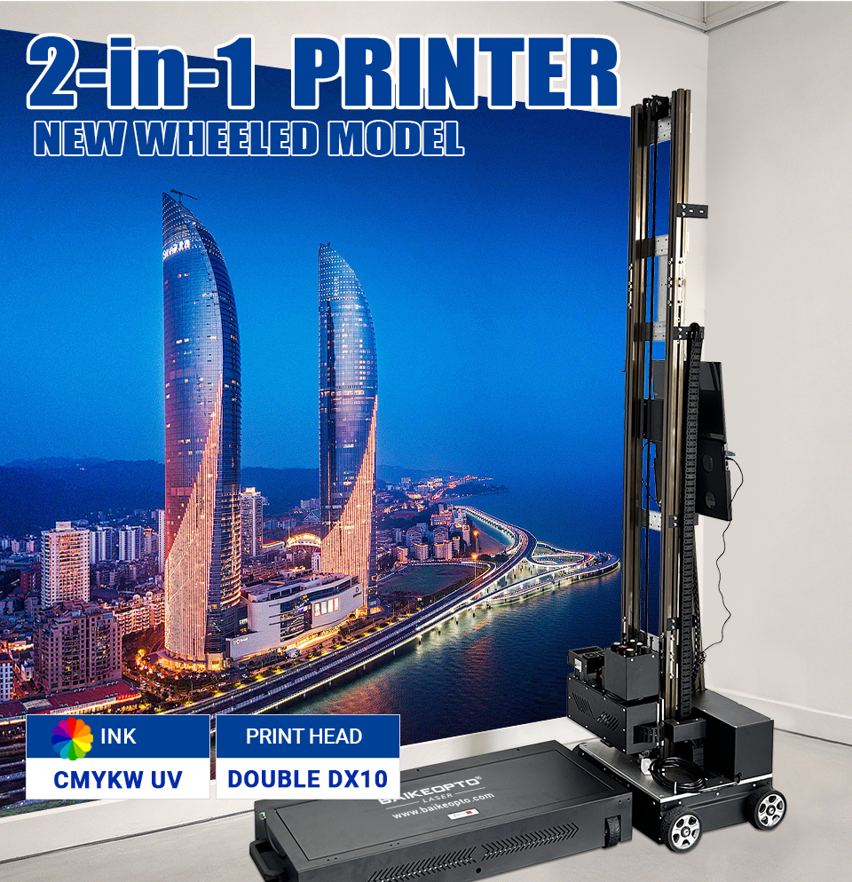 The 2-in-1 printer supports both vertical printing on the wall and horizontal printing on the ground. No additional equipment is required, significantly reducing procurement and storage costs. It is widely used in interior home decoration, commercial spaces, as well as outdoor cultural walls, parking lot graffiti, advertising promotions and other scenarios. |