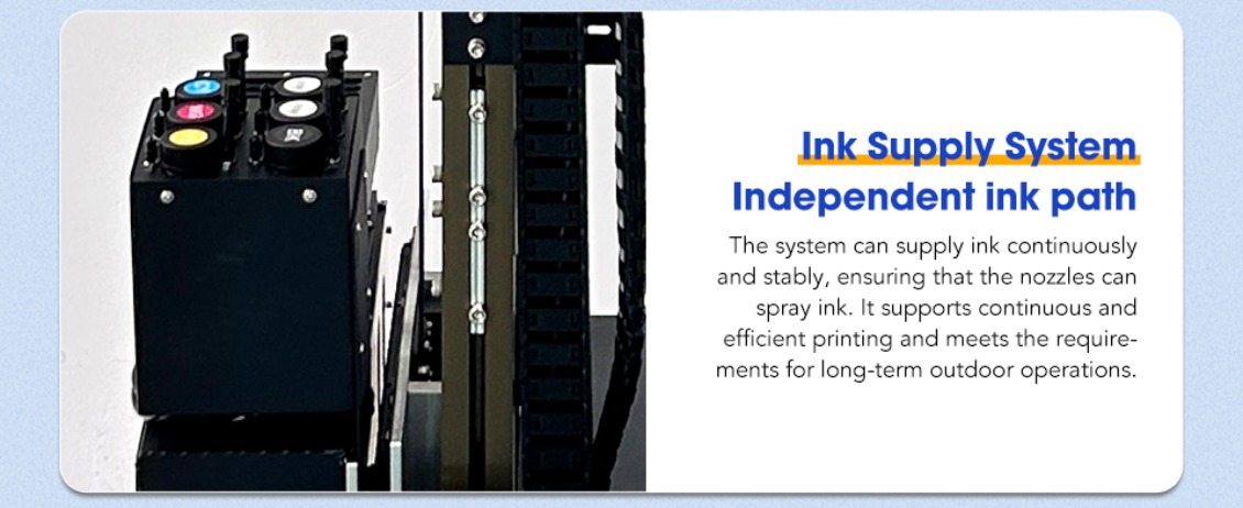 The system can supply ink continuously and stably, ensuring that the nozzles can spray ink. It supports continuous and efficient printing and meets the requirements for long-term outdoor operations. |