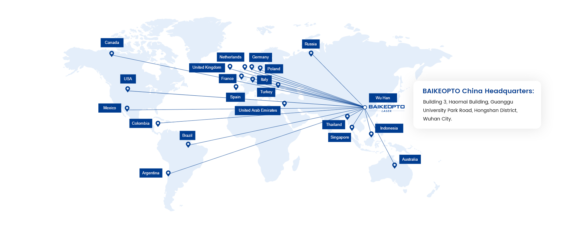 BAIKEOPTO LASER has its Optics Valley headquarters and branches in China, which can provide support for any products, services or inquiries of global customers. If you have any questions, please feel free to contact us directly.
