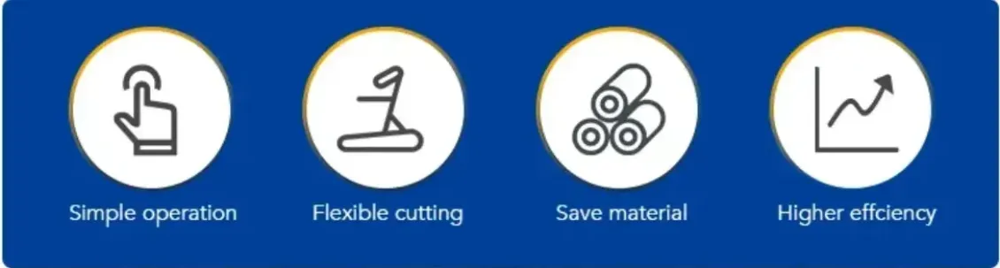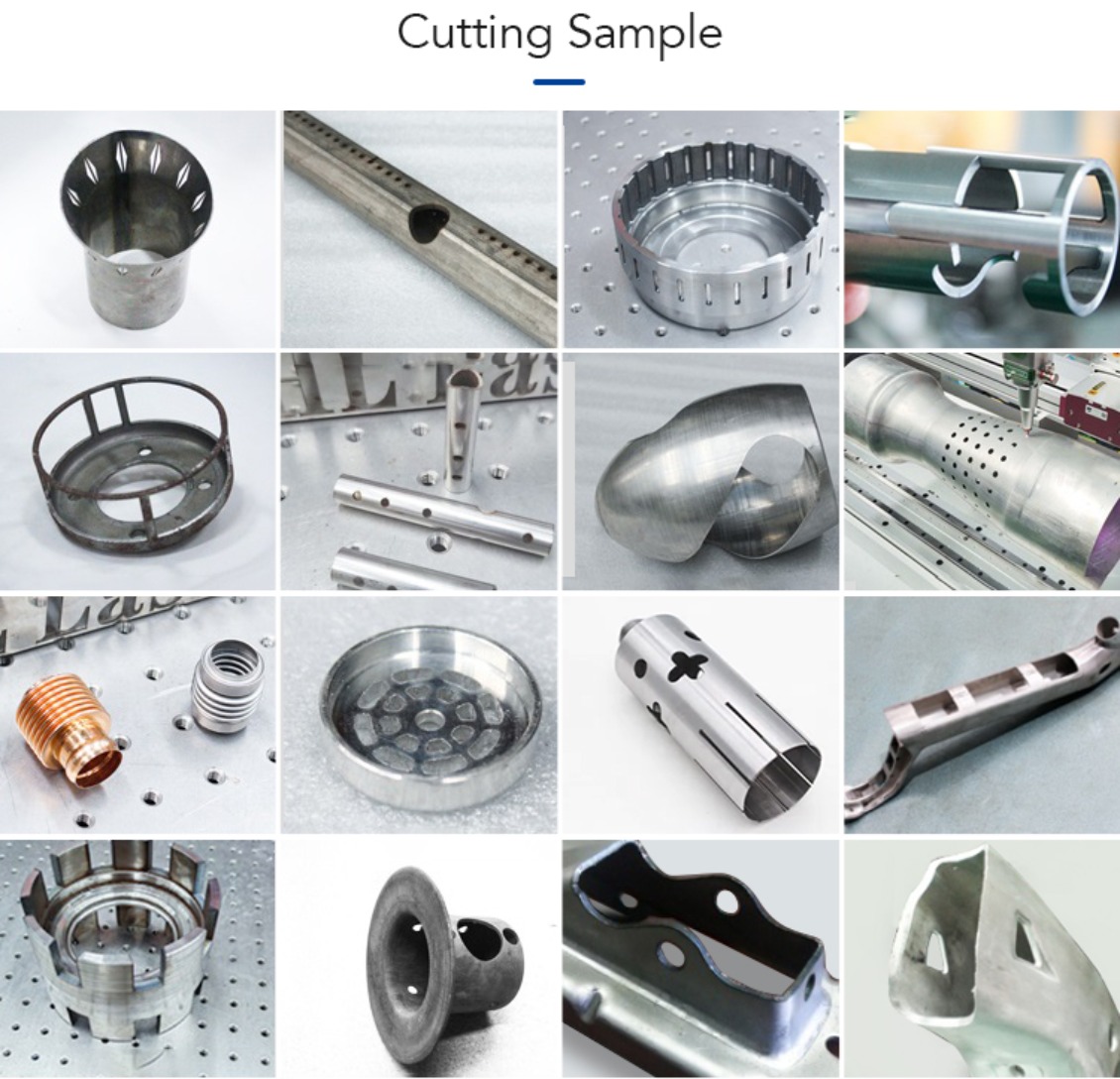 Simple cuttingReplace the traditional trimming die and punching die.Shorten the new product research and development cycle.Reduce manufacturing costs.Develop specialized displacement machines and supporting fixtures.The special-shaped pipe fitting for hole cutting and arc cutting.