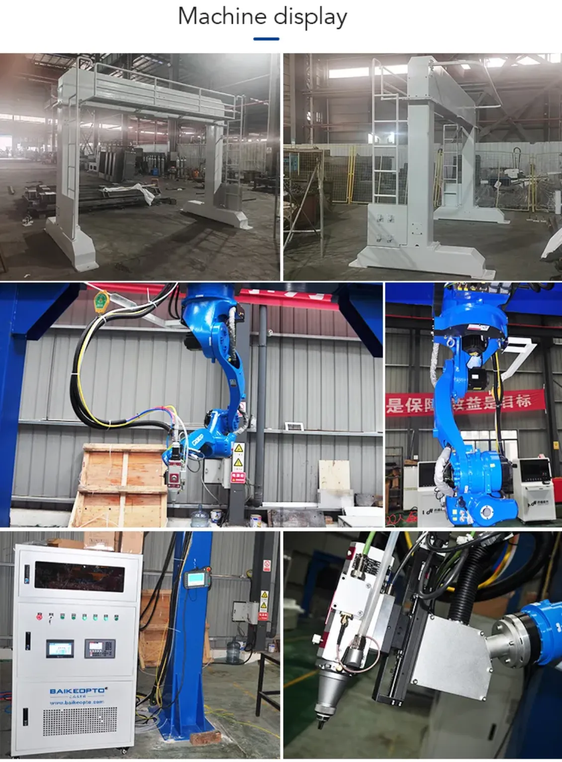 1.What materials can be cut by the 3D laser cutting machine? It's widely used in metal and non-metalic materials, such as stainless steel, carbon steel, aluminum alloy,brass, titanium alloy, rubber, plastic, etc. 2.What are the main components of this machine? The main components are: laser source, robot arm, water cooling system, control system, cutting headcutting platform, etc. 3.How about the cutting precision and speed? The accuracy is up to 0.05mm, and speed is 12m/min at most. 4.How to choose the right power of 3D laser cutting machine? It depends on the material and thickness, for example, the power of 1000w-3000w is suitable for cuttingstainless steel plate with 0-8mm, Please inform our personal consultant ofyour cutting needs and recom.mend the best solution for you. 5.What are the advantages of 3D laser cutting compared to traditional processing? High precision, fast effciency( 3-5 times faster than the traditional way), high flexibility, high cutting quality. 6.How about the shipment? It is packed in a stable and hard wooden case, with shockproof treatment, suitable for land or sea transporta. 7.How to install after receiving the goods? There are detailed product manuals, including detailed installation quides, and there are also engineers whocan teach the installation online and remotely in real time. 8.How long is the warranty period? It's one year. And don't be worry ,even after the warranty, there will be a special engineer to help. 9.Do you support customization or OEM/OED? Yes, we can tailor the service to your needs 10.What other products do we have? Fiber Laser Cutting Machine, Laser Cleaning Machine, Laser Welding Machine, Laser Marking Machine andWall Printing Machine. |