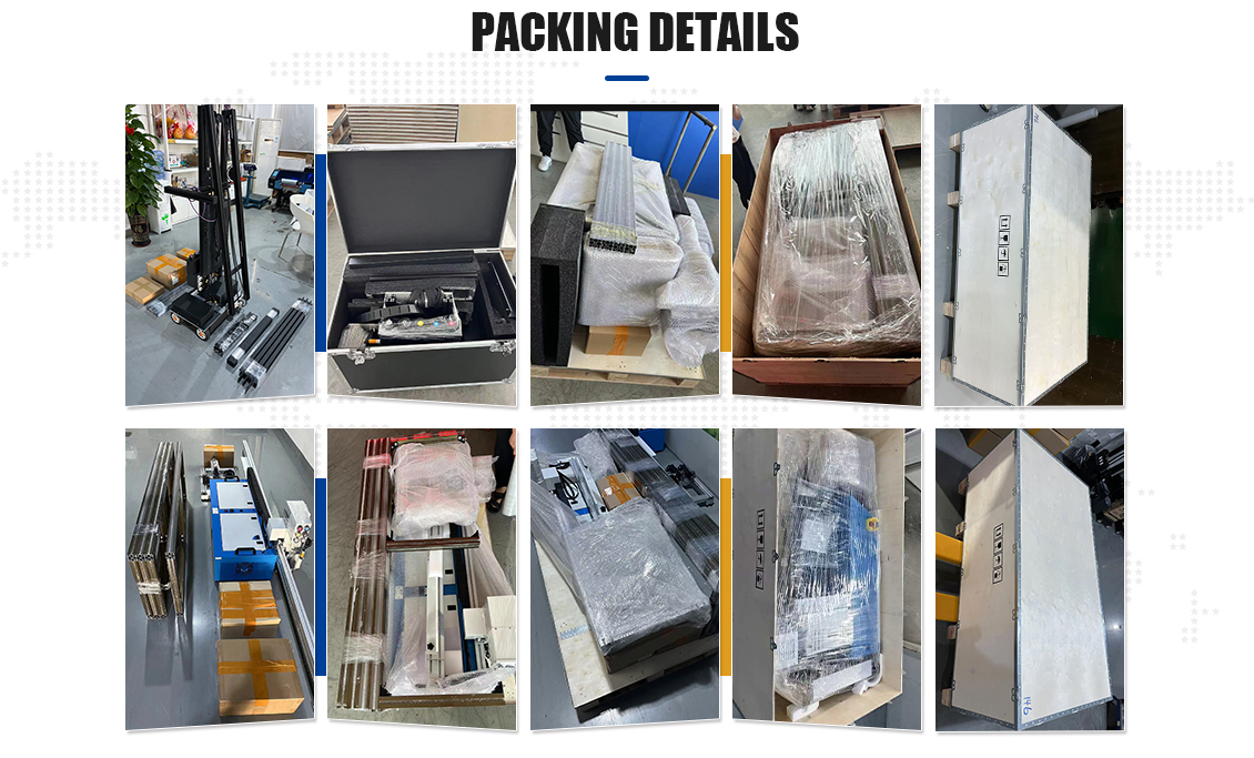Q1: Are you a factory or a trading company? Q2: How long is the warranty period after purchasing the machine? Q3: How soon can the delivery be made after payment? Q4: How long can the printed patterns remain on the wall? Q5: How much ink is consumed for printing patterns? Q6: What should I do if I no longer want the printed pattern on the wall? Q7: What language settings are available on the machine? Q8: How do you handle uneven ground during printing? Q9. How is the quality of the machine? Are there any components that are prone to damage? Q10. Can one print head be used for printing four colors, while another print head is dedicated to printing white? |