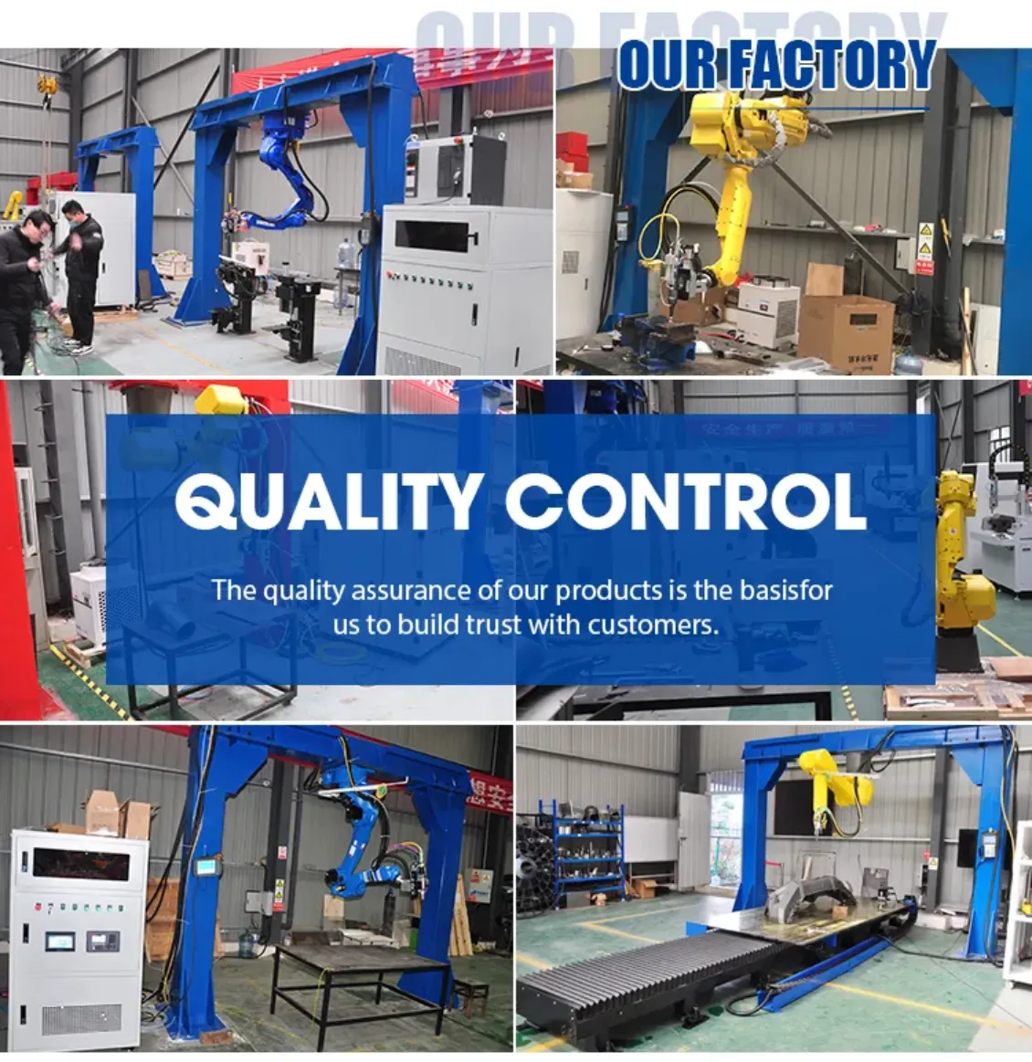 Six-axis industrial robotsRobots can be selected based on process requirements such as customer workpiece size and cutting accuracy requirements, and can be perfectly matched with PLC systems,offline mapping software, displacement machines,and protective rooms.