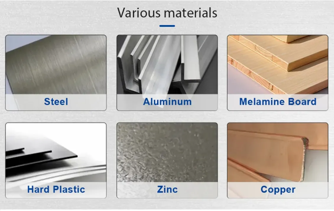 Applicable Materials Suitable for many production materials:Metal: steel, iron, aluminum, zinc, copper, etc., curved objects, hard plastics, paintedcartons, melamine boards, etc. |