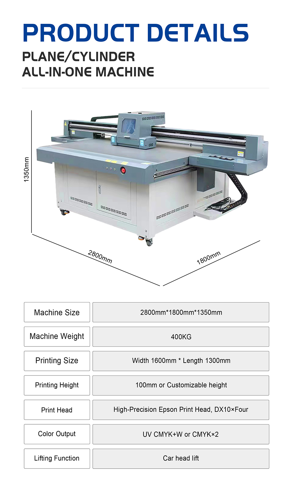| Print size | Width 1600mm * Length 1300mm |