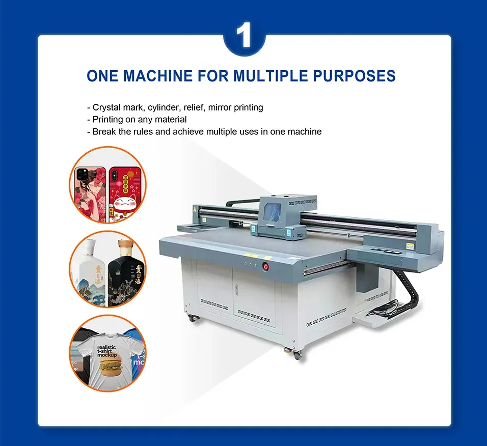 Want to change the appearance of your product instantly? Flatbed UV printers can help you achieve it. From packaging boxes to mobile phone cases, from decorative paintings to furniture panels, create unique styles anytime, anywhere, and light up every moment of life. Commercial display, personalized customization, advertising... a flatbed UV printer meets all your needs. Make every inch of the surface the focus of attention and help the brand stand out. |