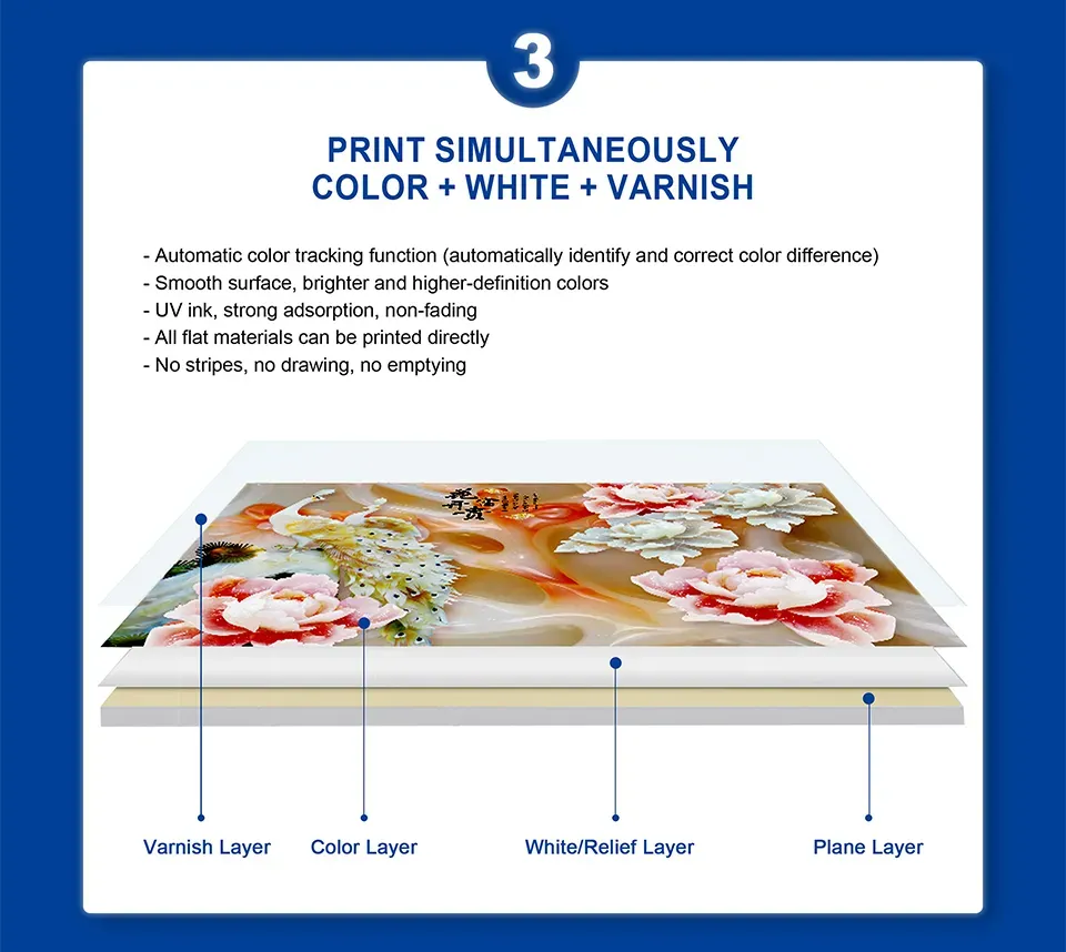 3. Print Simultaneously Color+White+Varish