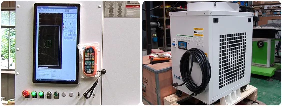 Water ChillerProviding cooling water cooling for lasers, providing constant temperature water cooling for laser cutting heads, efficient and environmentally friendly, with-flow and over temperature alarms, and linkage signal protection for lasers.