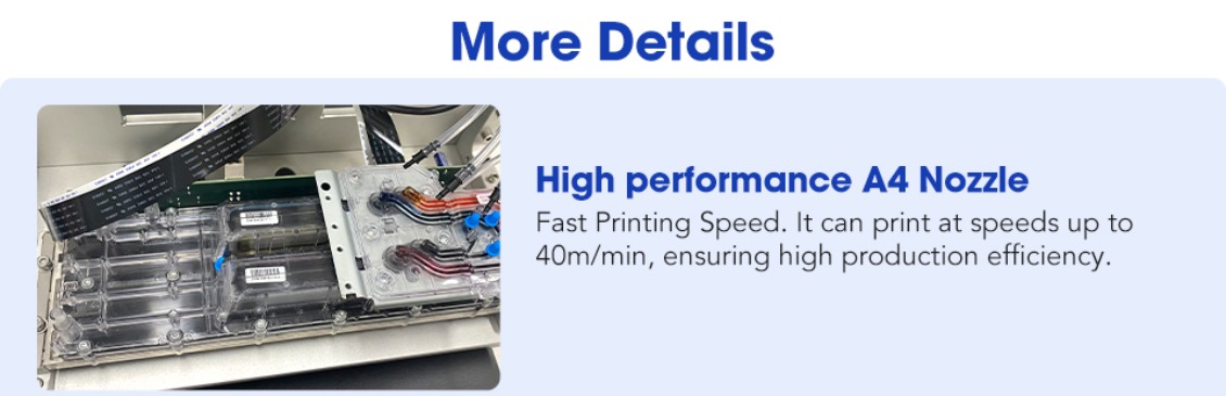 Fast Printing Speed. It can print at speeds up to 40m/min, ensuring high production efficiency.