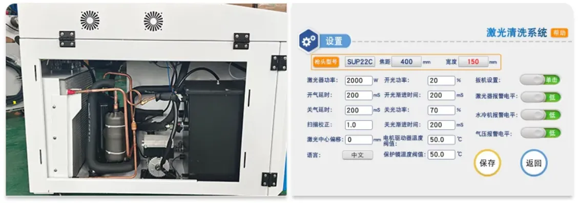 The chiller ensures the efficiency, accuracy and stability of the laser cleaning equipment by cooling the laser light source, optical components and cleaning system.