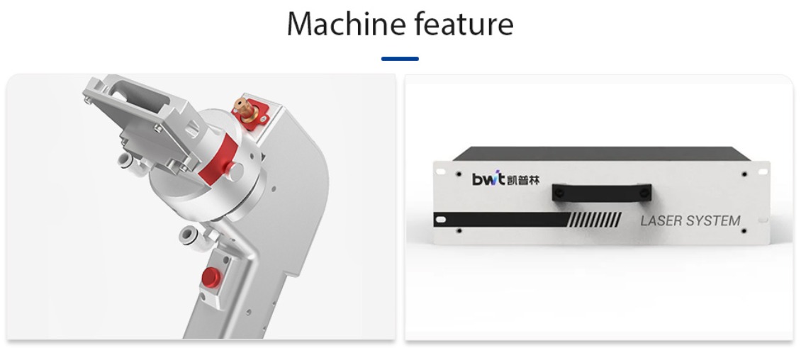 1.lt highly integrates two-dimensional scanning galvanometer, optical lens assembly.cleaning control card, software and human-machine interface, etc. The system isstable and reliable, compact in structure, precise in optical path, good in sealing,exquisite in appearance, light in weight and easy to install. The gun body only needsto be equipped with a laser and connected to a power supply to be used 2.High-speed motors are used,ensuring high cleaning efficiency. 3. lt features multiple security mechanisms such as fingerprint and password login,temperature protection, motor anomaly protection, and disconnection protection,and has an automatic sleep function during off-peak hours.4. The cable is up to 30 meters long, solving the problem of long-distance welding |