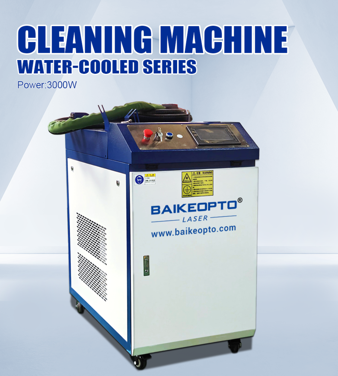 The laser cleaning equipment produced by Baikeopto is a new generation of high-tech products for surface treatment, which is easy to install, control and realizeautomation. Simple operation, power supply, open equipment, can be no chemi-cal reagent, no medium, no dust, no water cleaning, can fit surface cleaning, clean-ing surface cleanliness is high, can remove object surface resin, paint, oil stains, dirtrust, coating, coating and oxidation layer, and the industry is widely used, coveringships, auto repair, rubber mold, high-end machine tools, tracks and environmentaprotection.