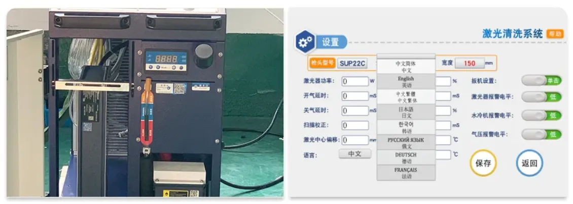Laser cleaning system This operation interface supports multiplelanguages and can meet the needs ofusers from different regions. |