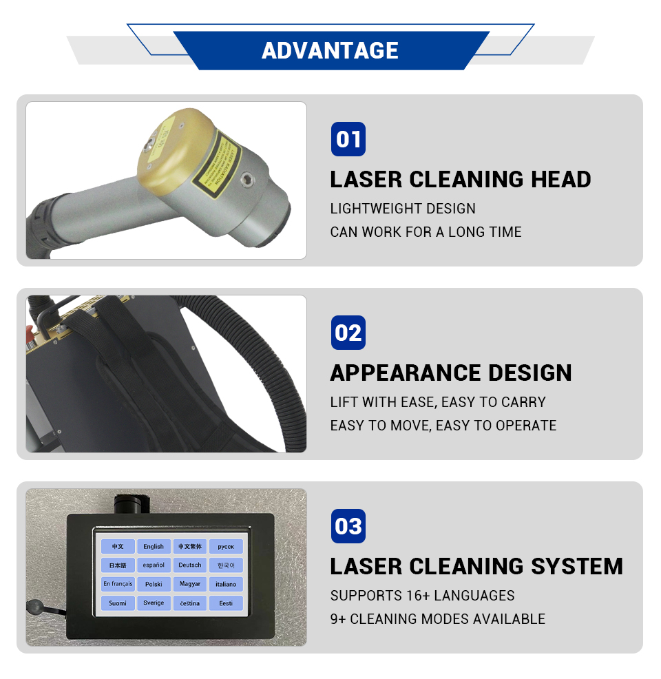 Answer: Advantages include improved cleaning efficiency, precision targeting of contaminants without harming the underlying material, no requirement for chemical cleaning agents, and reduced long-term maintenance costs. |