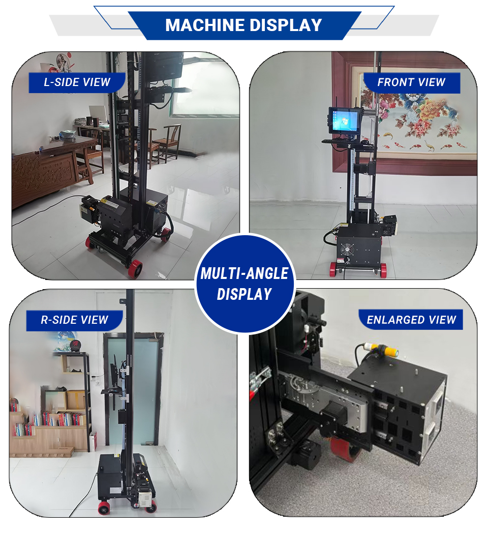 Q1: Are you a factory or a trading company? Q2: How long is the warranty period after purchasing the machine? Q3: How soon can the delivery be made after payment? Q4: How long can the printed patterns remain on the wall? Q5: How much ink is consumed for printing patterns? Q6: What should I do if I no longer want the printed pattern on the wall? Q7: What language settings are available on the machine? Q8: How do you handle uneven ground during printing? Q9. How is the quality of the machine? Are there any components that are prone to damage? Q10. Can one print head be used for printing four colors, while another print head is dedicated to printing white? |