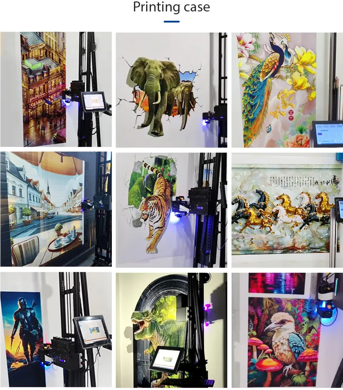 Q1: Are you a factory or a trading company? Q2: How long is the warranty period after purchasing the machine? Q3: How soon can the delivery be made after payment? Q4: How long can the printed patterns remain on the wall? Q5: How much ink is consumed for printing patterns? Q6: What should I do if I no longer want the printed pattern on the wall? Q7: What language settings are available on the machine? Q8: How do you handle uneven ground during printing? Q9. How is the quality of the machine? Are there any components that are prone to damage? Q10. Can one print head be used for printing four colors, while another print head is dedicated to printing white? |