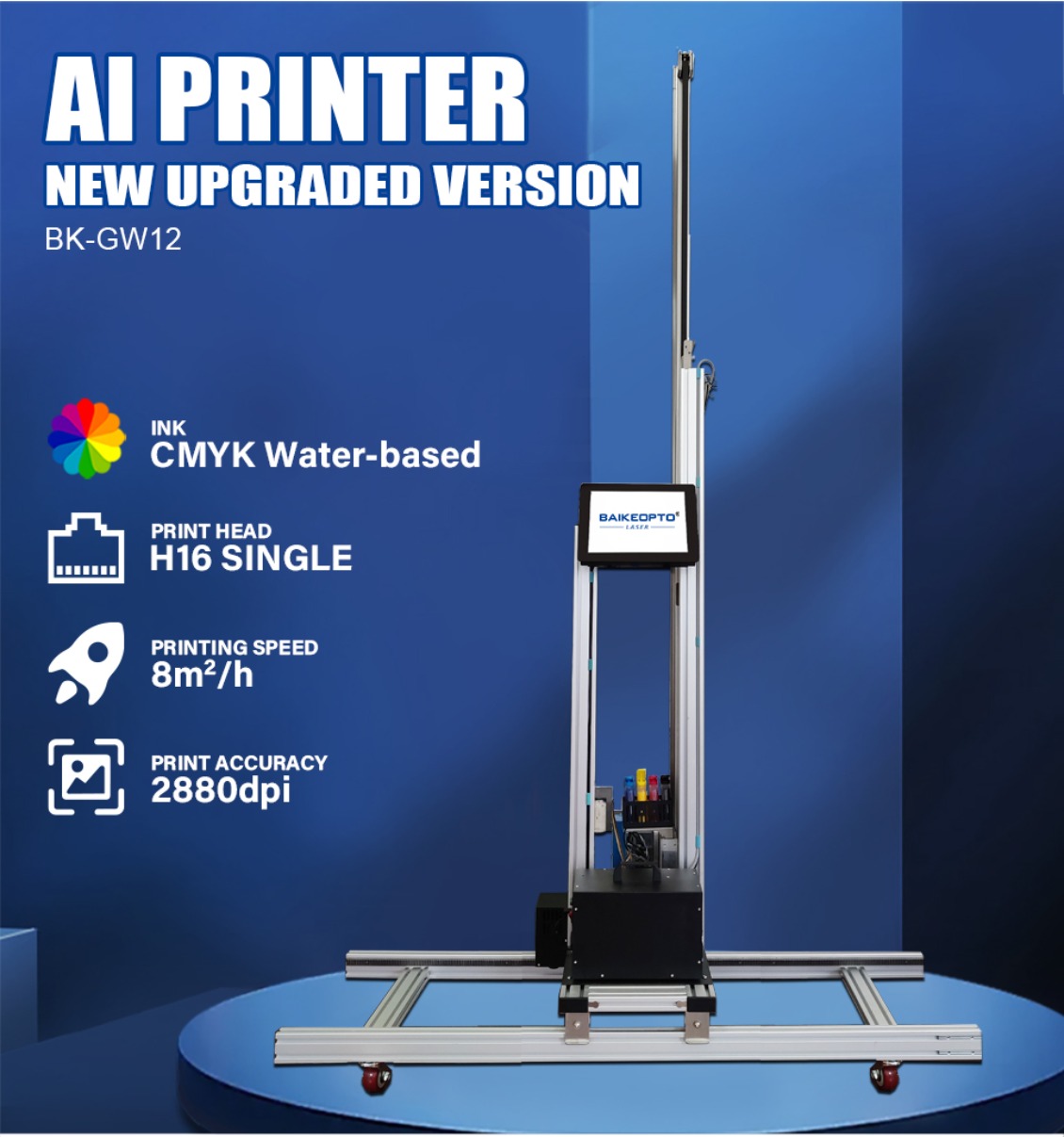 When printing, the Baike AI smart printer can intelligently recognize the white areasin the image, automatically skip the white areas, and seamlessly connect thenon-white areas for printing, this innovative technology can save ink, shorten printing time, and is suitable for printing on white walls.