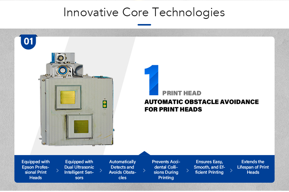 2.Equipped with Dual Uitrasonic intelligent sensors 3.Automatically Detects and Avoids Obstacles 4.Prevents Accidental collisions During printing 5.Ensures Easy smooth ,and efficient Printing |