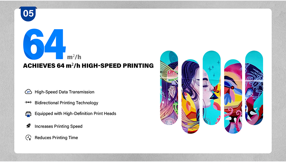 When the image height exceeds 2 meters and the length can be extended indefi-nitely, the Baike Al inteligent Printer can automatically divide the large image into N-small images for printing. During printing, the N smallimages can be automatically seamlessly connected to form a complete large image.