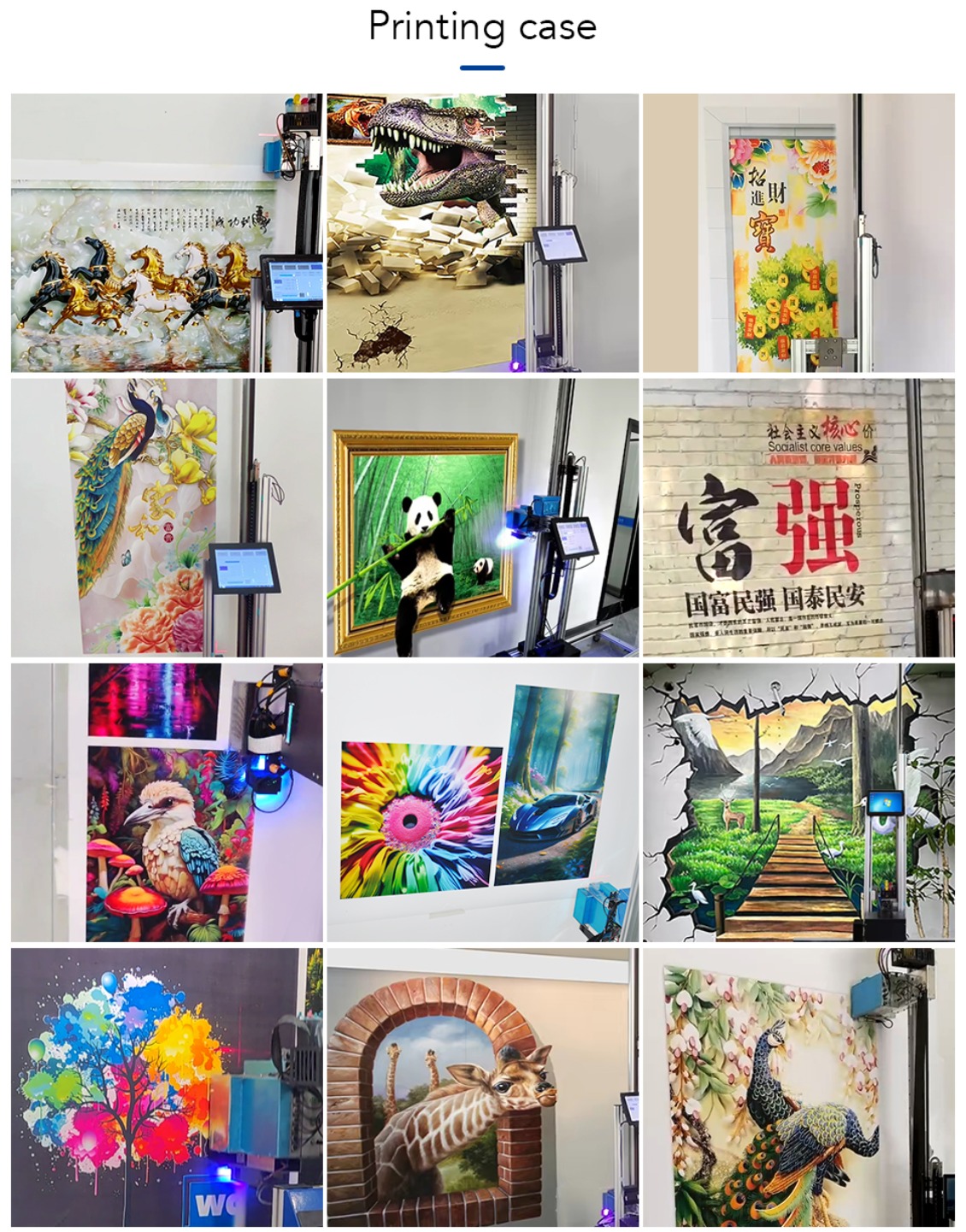 Applicable Industries The Ai wall printer has a great role for indoor and outdoor decorations. It's not only perfect for commercial advertising career, but also is important for personal decoration needs, such as street graffiti, Ty background wall decor, mall decoration,hotel decoration, school fence decor, cultural wall decor,advertising wall and truck decorations. |