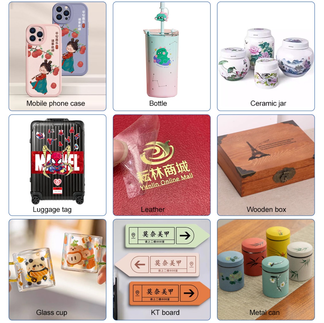 | 1. Four High Precision Print Head I1600e , CMYKW+V+Gold V UV ink 2.Waterproof,anti-corrosion,anti-scratch and anti-wear. 3.High resolution printing - provides excellent printing quality, making image details clearer and suitable for printing high demand graphics and photos. 4.Rapid curing technology - using LED UV curable ink to achieve a fast production process of instant printing and drying. 5.Environmental Protection and Energy Conservation - The low energy consumption operation process reduces environmental impact while lowering long-term operating costs. 6.Multi material compatibility - can print on various materials such as glass, metal, wood, plastic, etc. without the need for device replacement.Personalized 7.Customization capability - easily achieve personalized printing needs for small batches or a minimum order, meeting the customization market. 8.Accurate Color Management - The advanced color management system ensures that every printed color maintains consistency and accuracy. 9.White ink stacking function - can print three-dimensional and relief effects, increasing the added value and visual appeal of the product. 10. No plate making cost required - direct digital printing saves time and cost of plate making and proofing in traditional printing. |