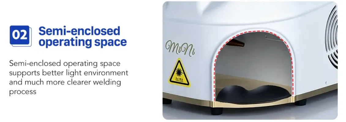 02 Semi-enclosed operation space Semi-enclosed operation space supports better light environment and much more clearer welding process. |