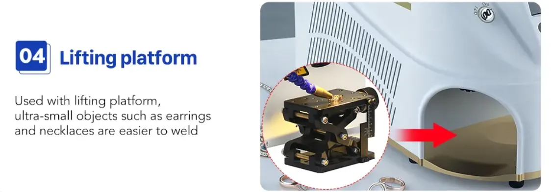 Used with lifting platform, ultra-small object such as earrings and necklaces are easier to weld