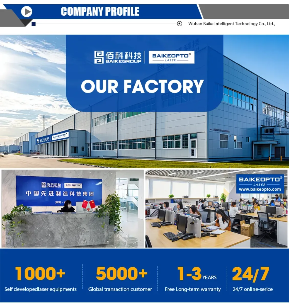 | Wuhan Baike inteligent Technology Co, Ltd, a wholly-owned subsidiary of Wuhan Baike Times Laser Technology Co,Ltd, was founded in 2008 as a professional supplier of laser machine.Wuhan aike Inteligent Technology Co,Ltd, located in Optical vaey of china, has gathered the best R&D,production and marketing teamsin the domesti.laser industry. More than 100 kinds ofindustrial laser products,including pneumatic marking machine, laser marking machine,laser welding machine,lasercuting machine, developed by the company's technical team,have been widely used in 3C electronics, semiconductor, new energy including photovoltaic)metalorocessina. automoble manwtactunng, electc power, textle machne, aslon twc, medical devces, nstuments ang meters, iood processing aneother industries, The product auality and service have been highly praised by customers internationaly. We has achieved strategic cooperation with dozens of domestic top 500 manufacturing enterprises,We've been dedicated to provide our customers with thehighest quaity,the best cost performance,the most suitable laser equipment.f you have any needs, please cal/mallus directly, All you need to do is just telus what you need, we'll provide the most professional services. |