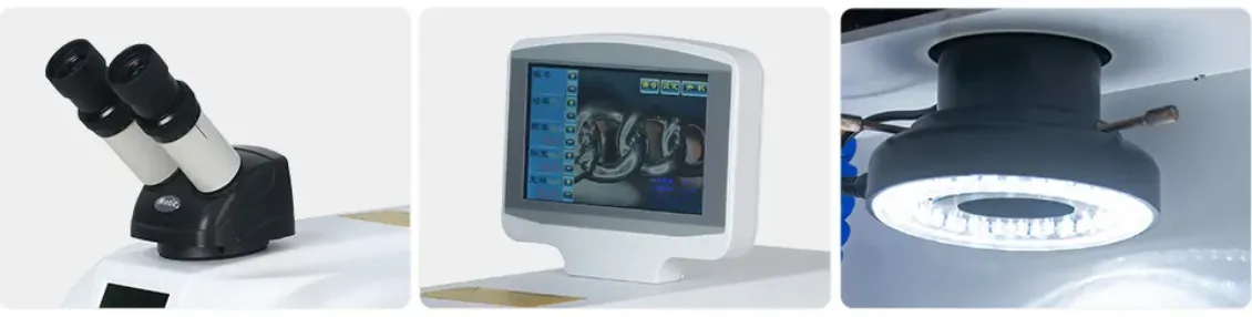 | Jewelry laser welding machine adopts ergonomic design, suitable for professionaappearance design of jewelry laser welding industry, equipped with a dedicatedcross cursor microscope observation system, equipped with high-speed elec-tronic filter device, which can protect the eyes of the operator. The high-powerbeam expansion system can obtain more fine spots to meet the needs of finelaser spot welding; the whole machine is small in size, convenient to carry andtransport, simple to operate, good welding effect, stable and reliable equipment,and low failure rate. |