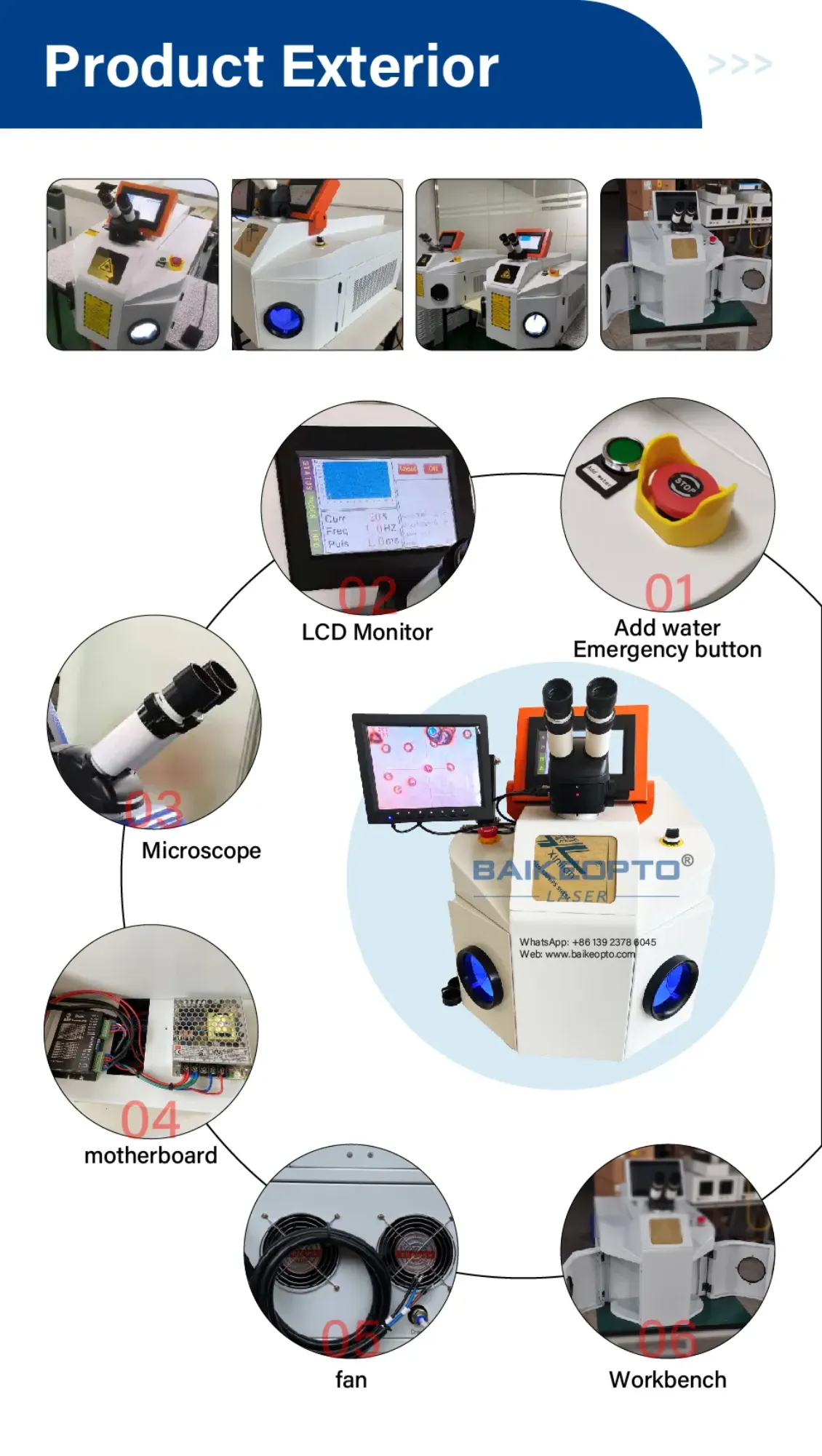 1.Energy, pulse width, frequency, spot size can be rapidly adjusted to achieve a variety of welding effects. 2.Capable of welding 1k~12k gold, copper alloy, zinc alloy, stainless steel, titanium alloy and other metals 3.Compact and practical light path design, light body and small footprint. 4.The service life of the spotlight cavity is more than 5 years, and the service life of the xenon lamp ismore than 6 million times. 5.The operation interface and observation interface are the same full-color touch LCD screen. 6.Stainless steel water tank welded by laser can effectively prevent scale from corroding the inner wall ofwater tank and optical components. 7.Support 12 hours of continuous work with stable performance, and no lamp replacement required within8000 hours. 8.Human-based design accords with ergonomics, avoiding fatigue after long time working9.-Slight deformation, small heat-effective area, high welding quality, pollution free, eco friendly. |