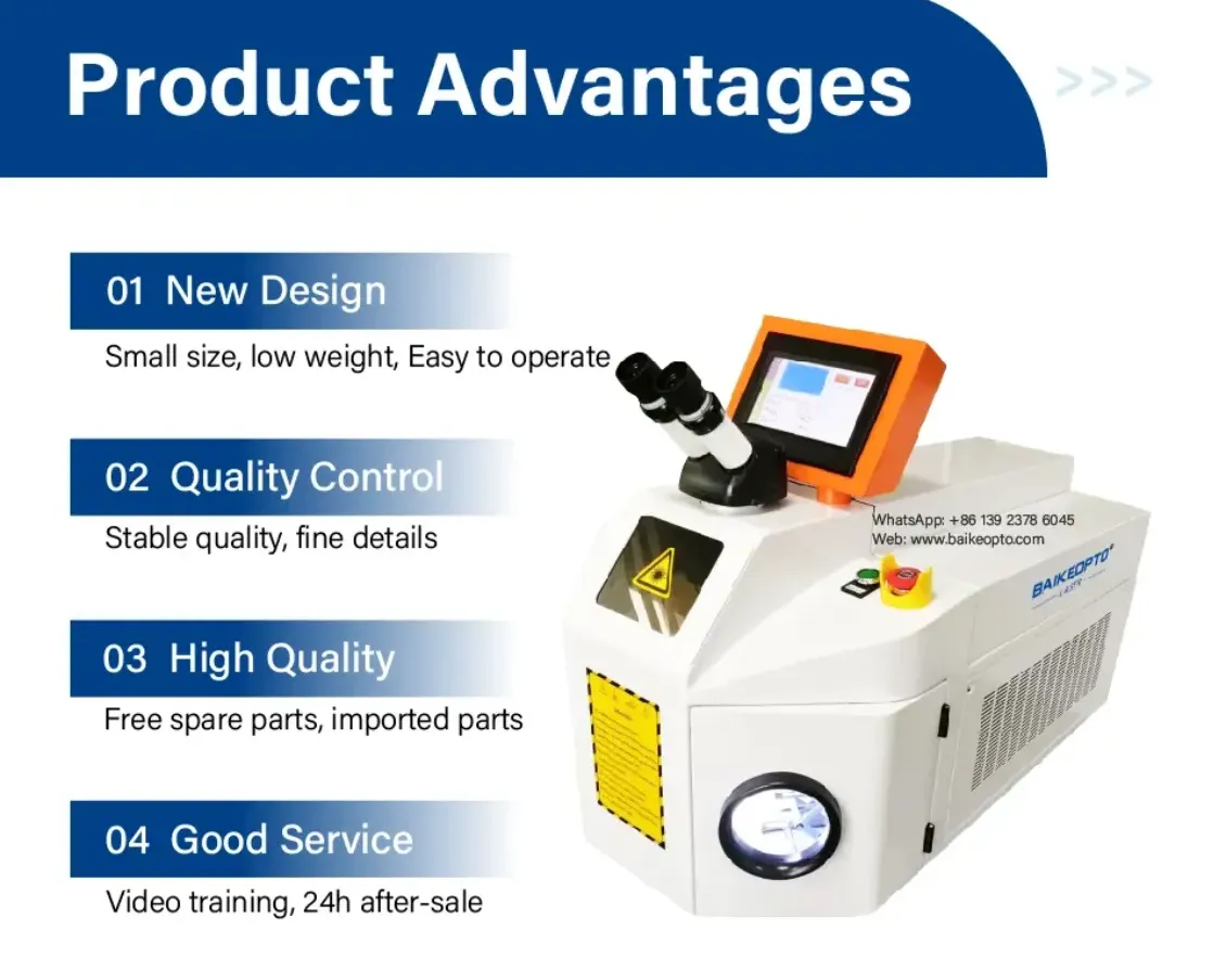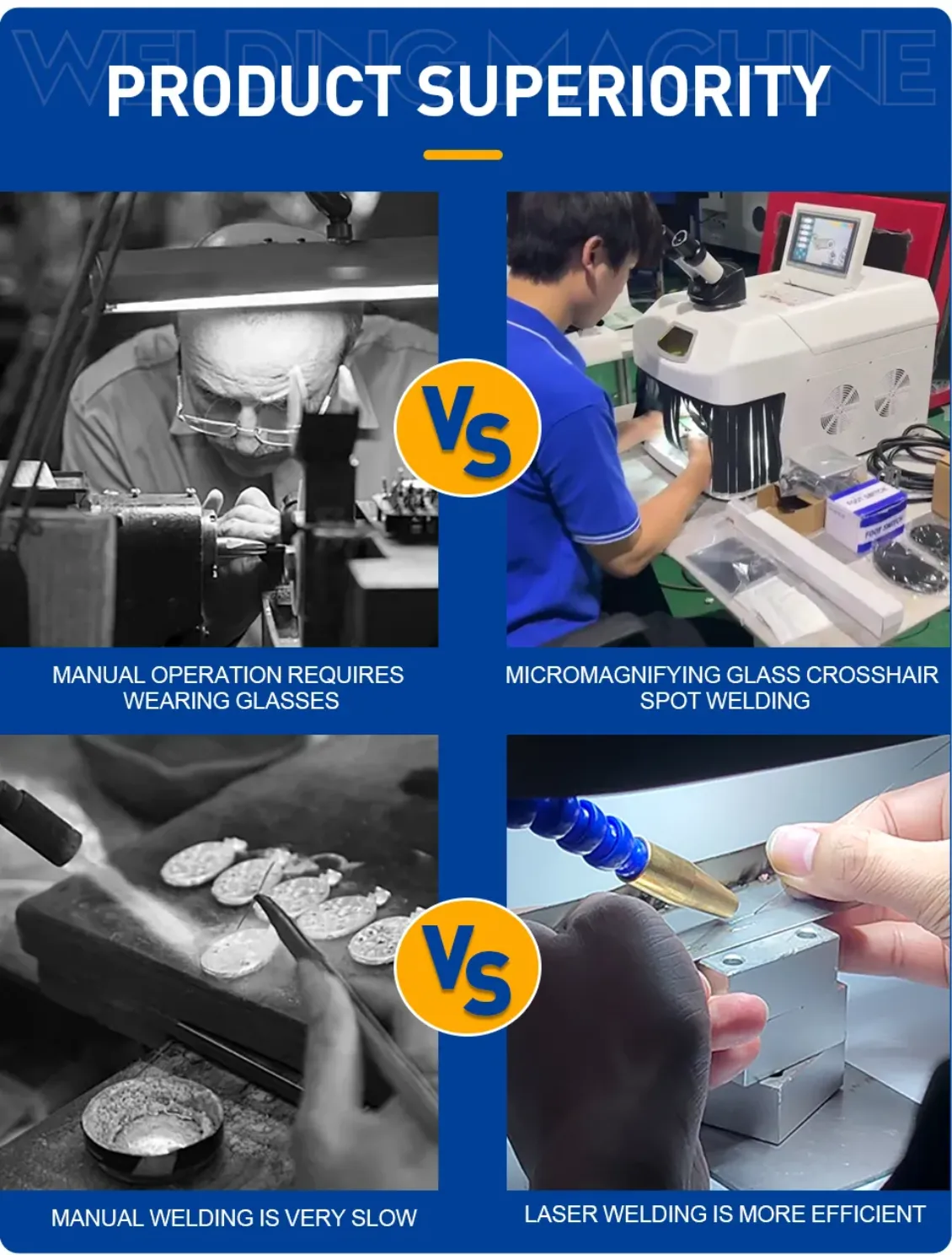 | Compared with other welding processes, laser welding can realize the welding of many materials which has advantages in comparison.The thermal deformation of welding components is smaland the ioint auality is hiaher. Laser welding has the advantage of being able to achieve locaheatina characteristicsin a small ranae, which is widely used with precision devices such asiewelry, batteries,automotive, aviation and other applications. This machine is especially suitable for jewelry industry, no special fixture is needed, can behand-heldmicromagnifying glass cross aiming positioning spot welding, filling material, filingsand holes, spotwelding freely, that is, spot. |