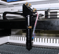 High precision laser head has long service life.It is equipped with red light indication and easy to position.It is easy to cause fire break out while processing,so it is added a flame-retardant blowing device to stop burning.