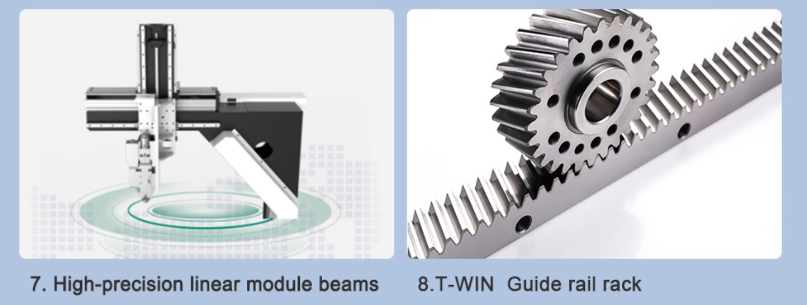 Light dead weight, reduce the operating burden and operating inertia of the beam, optimize the dynamic performance, ensure accurate positioning; High bearing capacity can withstand the inertia of the beam under high-speed operation, accurate positioning; Reducer internal helical structure, precise position, high transmission efficiency; It provides guarantee for high precision cutting.