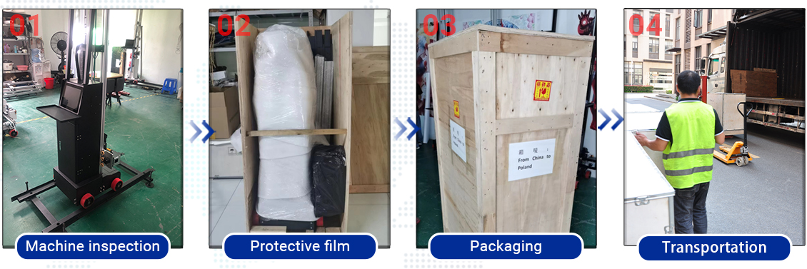 | A. When the height of the image is within 3 meters,the print length can be extended indefinitely(infinite extension through the ground rail cycle splicing), the printer does not require partition printing, create the perfect picture at once. | B. When you need to print images over 3 meters,using scaffolding to raise the machine, the print length can be extended indefinitely(infinite extension through the ground rail cycle splicing) , then partition print. |