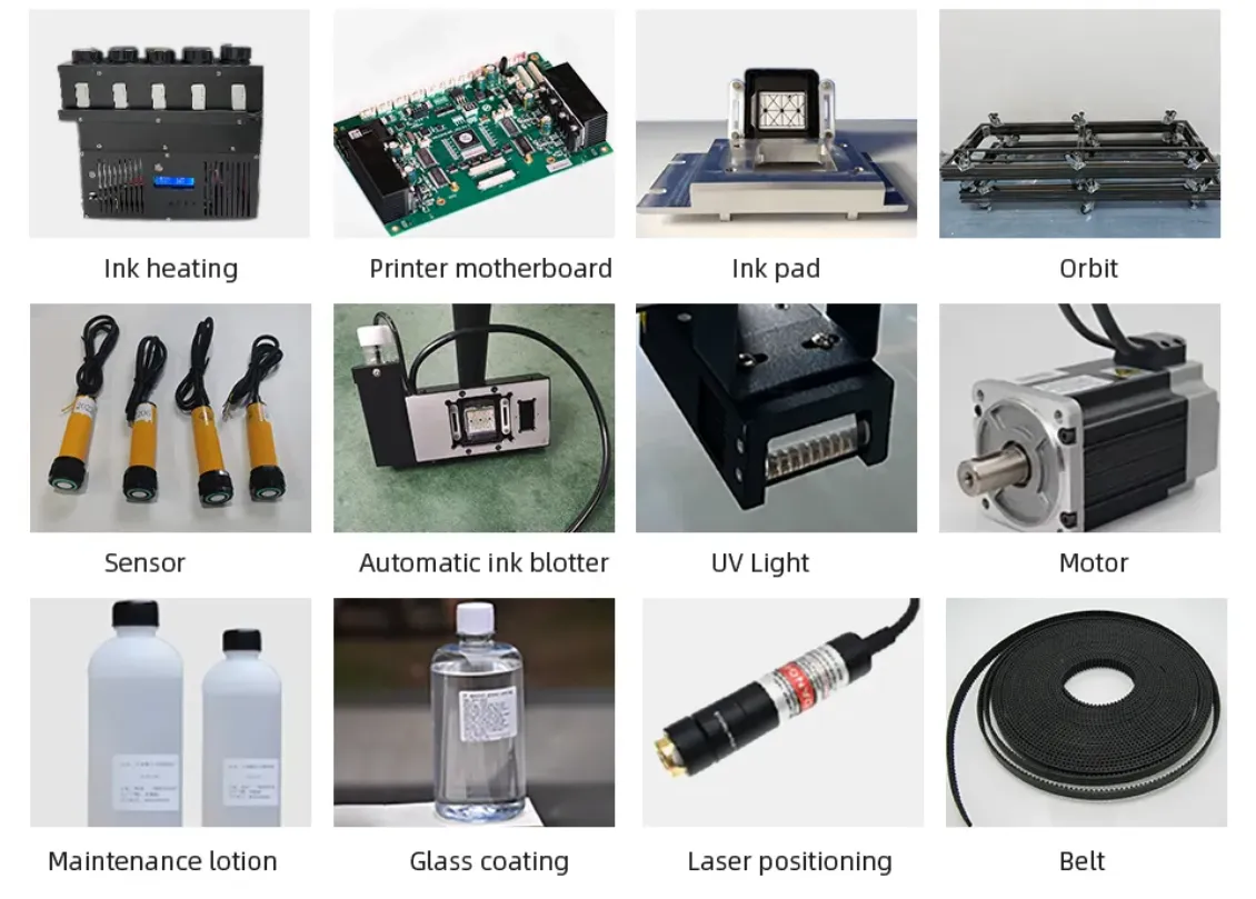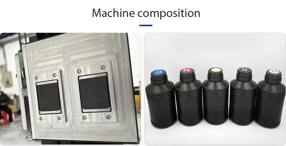 UV inkIt uses professional UV ink in five colors: CMYK + W. lt can print on white, black, or colored surfaces. The ink dries instantly, waterproof, moisture-resistant, and scratch resistant, with no fading for 10-20 years.