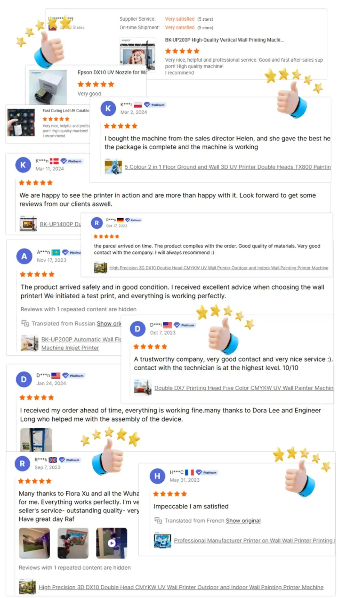 Q1: Are you a factory or a trading company? Q2: How long is the warranty period after purchasing the machine? Q3: How soon can the delivery be made after payment? Q4: How long can the printed patterns remain on the wall? Q5: How much ink is consumed for printing patterns? Q6: What should I do if I no longer want the printed pattern on the wall? Q7: What language settings are available on the machine? Q8: How do you handle uneven ground during printing? Q9. How is the quality of the machine? Are there any components that are prone to damage? Q10. Can one print head be used for printing four colors, while another print head is dedicated to printing white? |