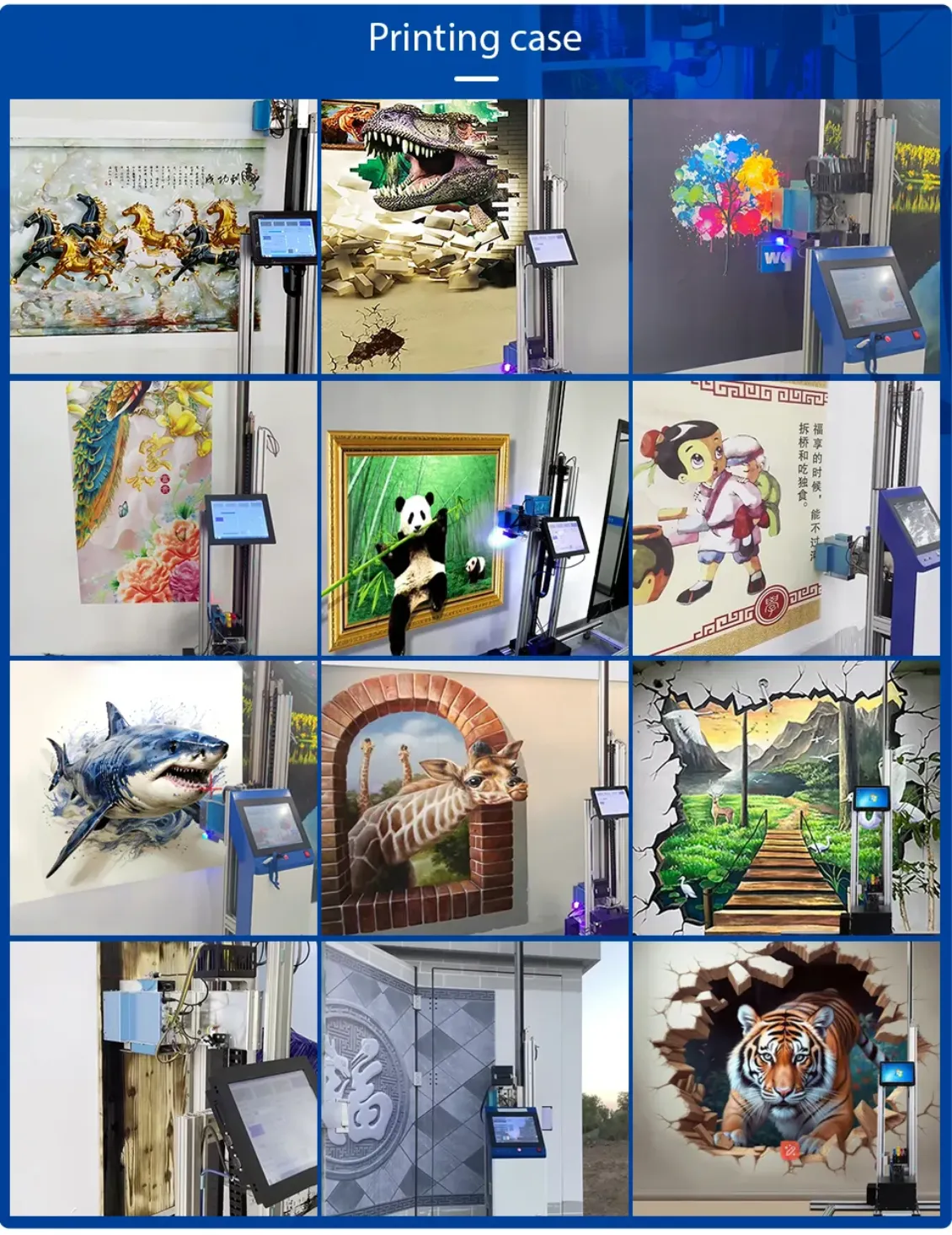 User-Friendly AI Wall Printer Easy Set-Up for Wall & Floor Projects Fast Speed Five-color CMYK+W UV Inkjet Wall Printer 3D Wall and Floor 2-in-1 UV Wall Printing Printer/UV Wall Printer Ground Printing Printer The 3d wall inkjet wall printer is a large-scale digital printing device. lt is controlled by acomputer and can precisely spray or jet the designed patterns onto smooth vertical surfaces such as walls, glass, tiles, and wooden boards. It has expanded the traditional inkjet printing technology from paper to the interior surfaces of buildings, and it is a revolutionary technology in the fields of advertising printing, interior decoration and artistic creation. |