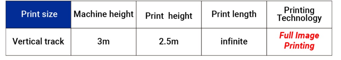 | Print size | 2.5 meters high × Any width,more than 2.5m, can be seamlessly spliced | |