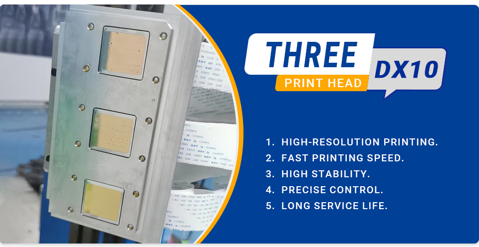 Three pcs DX10 PRINT HEAD 1.HIGH-RESOLUTION PRINTING 2.FAST PRINTING SPEED. 3. HIGH STABILITY. 4.PRECISE CONTROL. 5. LONG SERVICE LIFE 6. WIDELY USED |