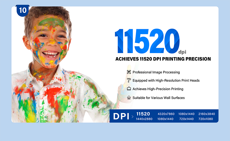 During the printing, the Baike AI intelligent printer can intelligently identify white areas in the image, and automatically skip them, so as to seamlessly connecting non-white areas for printing without damaging the image. This innovative technology can save ink, reduce printing time, and is suitable for printing on white walls. |