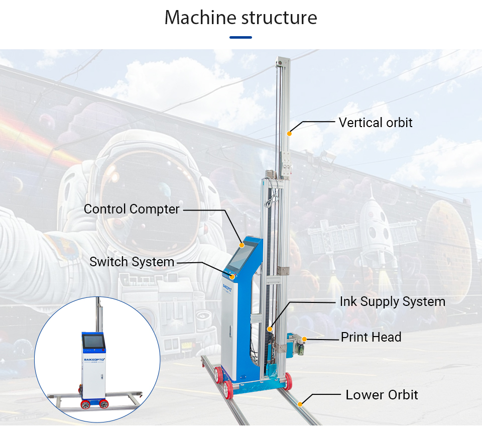 BAIKEOPTO wall printer has strong capability to print any image on walls: cement, tile, brick and even metal, glass etc. In just few minutes, the HD image is printed by UV ink, ensuring clear, realistic and wear-resistant 3D effect and greatly improving the productivity. Supported by powerful hardware and software, it can work steadily for many years, and realize one-click to print intelligently, as a veritable hand-free solution for modern enterprises. For commercial advertising and personal art decoration, the wall printer machine is the absolute unique choice. In additional, our wall printing machine has a favorable cost for most of the honest end users. AI intelligent printer is easy to transport ,Efficient and high-quality printing effects, easy to operate. Compared to traditional wall printer, it has much more printing speed and simple process, and automatic intelligent printing technologies make the printing much efficient with higher quality images |
