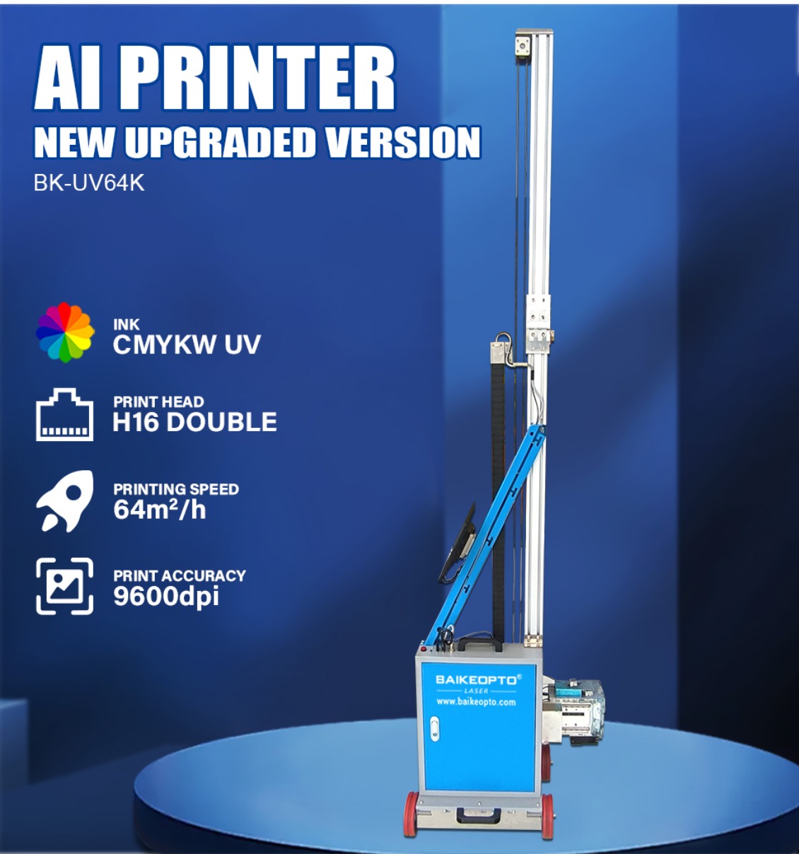 When printing, the Baike AI smart printer can intelligently recognize the white areasin the image, automatically skip the white areas, and seamlessly connect thenon-white areas for printing, this innovative technology can save ink, shorten printing time, and is suitable for printing on white walls.