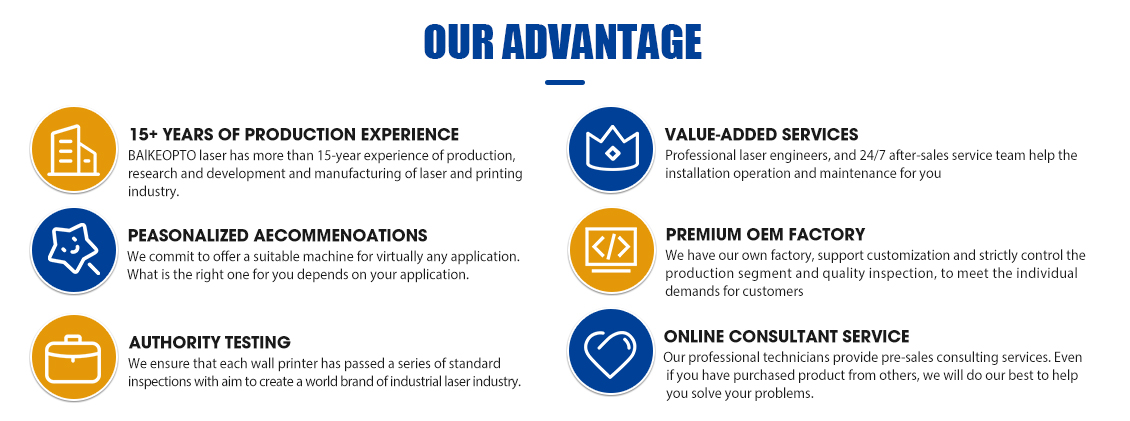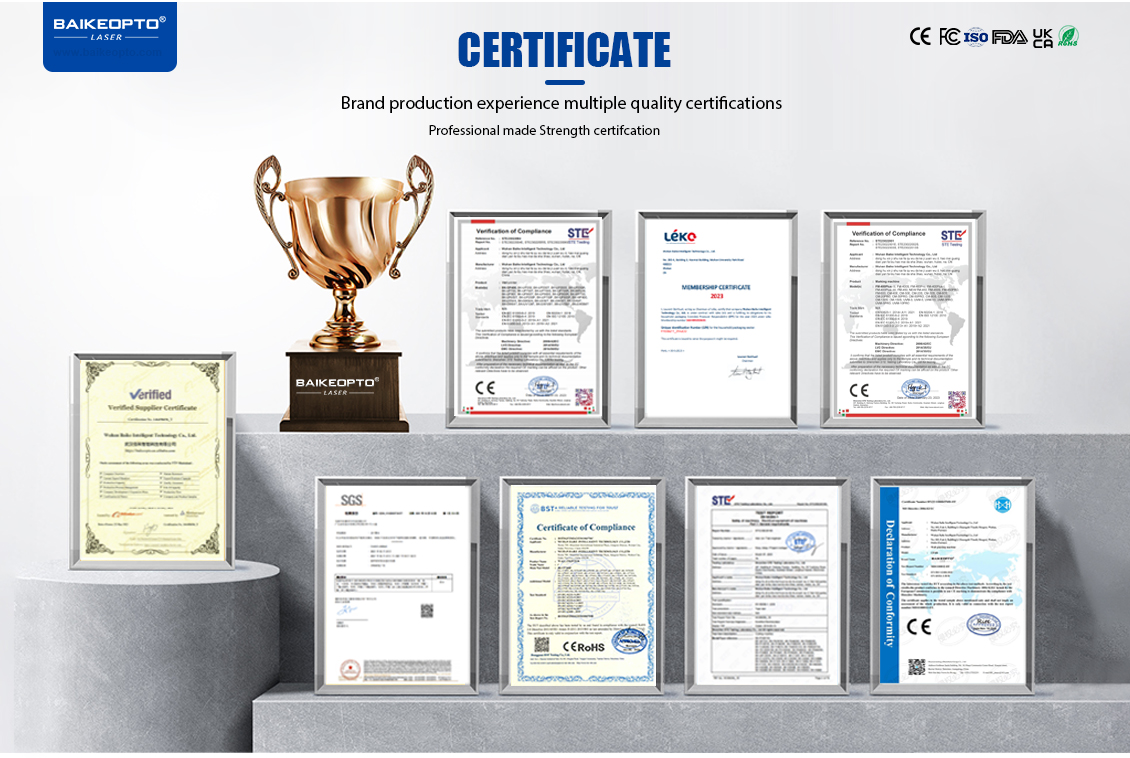 Wuhan Baike Intelligent Technology Co.,Ltd., a wholly-owned subsidiary of Wuhan Baike Times Laser Technology Co., Ltd., was founded in 2008 as a professional supplier of laser machine. Wuhan Baike Intelligent Technology Co.,Ltd., located in Optical Valley of China, has gathered the best R&D, production and marketing teams in the domestic laser industry. More than 1000 kinds of industrial laser products, including pneumatic marking machine, lasermarking machine,laser welding machine, laser metal processing, automobile manufacturing, electric power, textile machinery, fashion FMcG, medical devices, instruments and meters, food processing and otherindustries.The product quality and service have been highly praised by customers internationally.