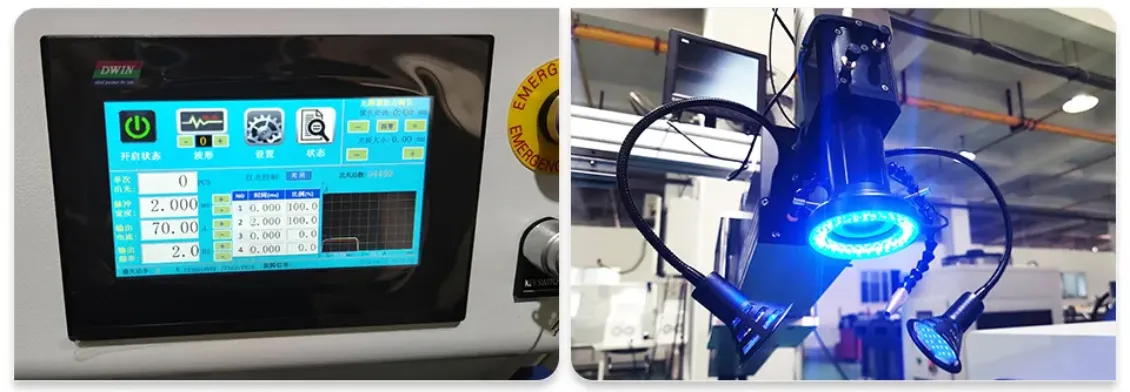 Water-cooled welding head,Reliable quartz lens,Manual zoom-in design, LED ring light attached