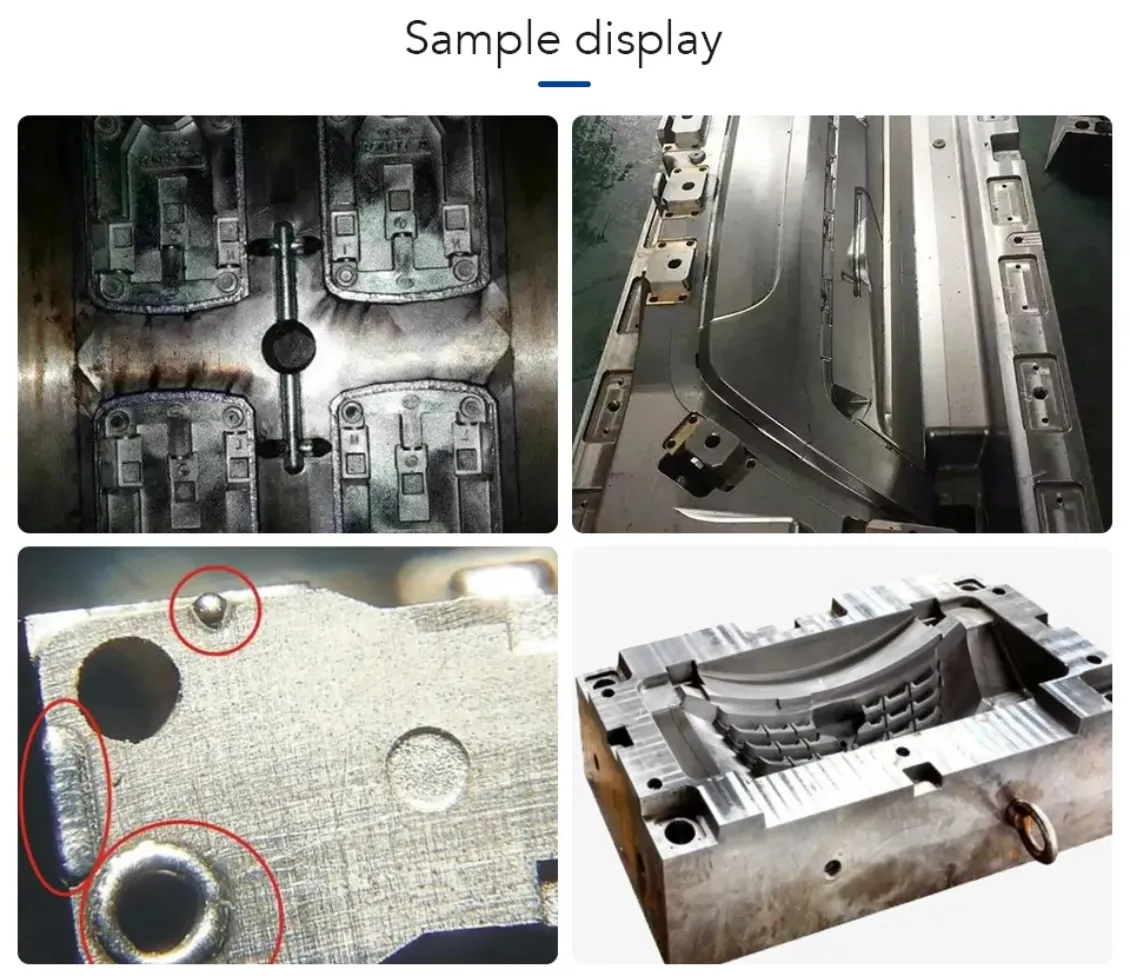 It is used for the repair/remodeling of large molds. A wide range of weldable mate & rials are available: cold work alloy steel and hot work alloy Steel, nickel tool steel, steel alloys, high-toughness aluminum alloys, etc. Other metals such as brass, aluminum-magnesium alloys,Titanium and platinum are also applicable.