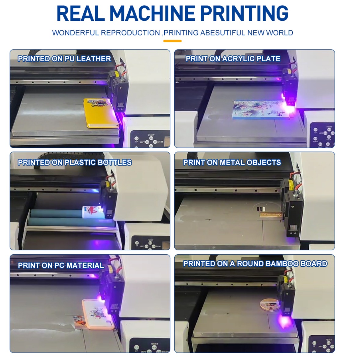 Innovation has no boundaries, Small flatbed UV inkjet printers - print your design dreams directly on a variety of materials. Whether it is glass, metal, wood or plastic, high-definition and durable pattern output can be achieved, making creativity everywhere. |