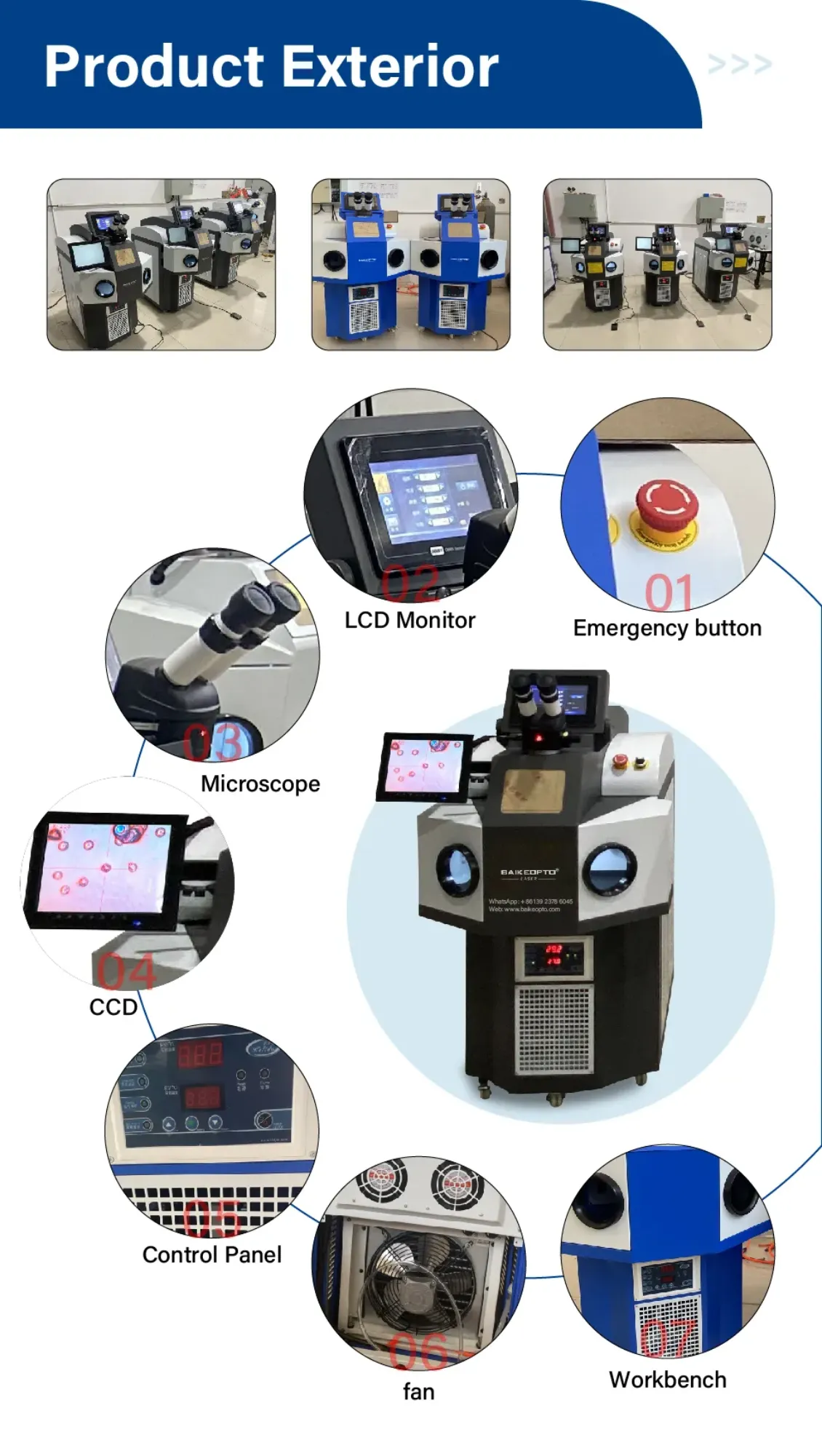 Model:200W YAG laser jewelry welding machine BK-YJW200B Voltage:110V/220V Laser Type:1064nm YAG Laser Small size    Low weight     Easy to operate Stable quality    Fine details